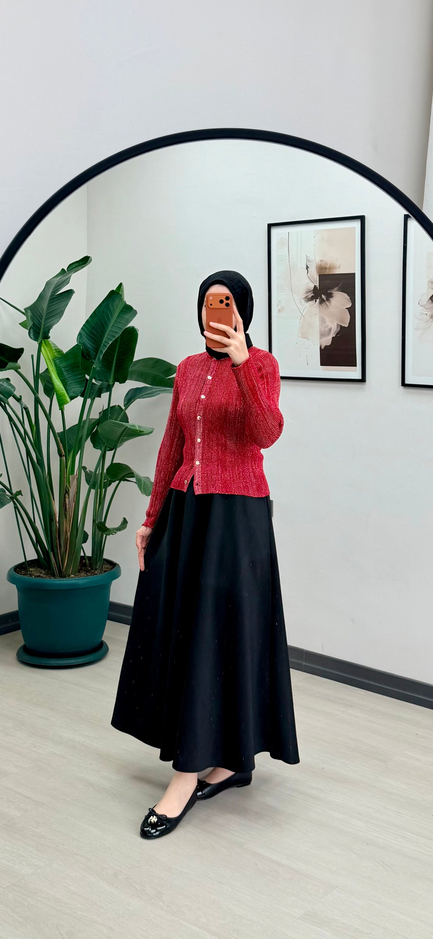 GABARDİN ETEKLE KOMBİNLENMİŞTİR.