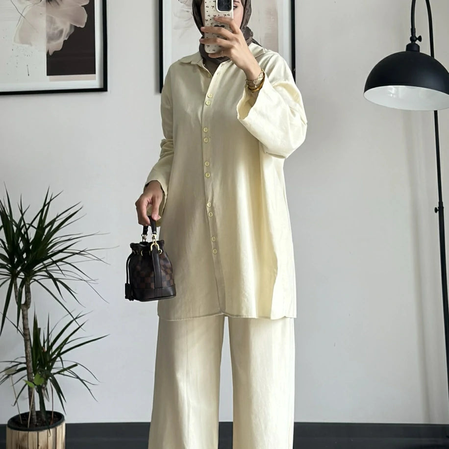 Keten kumaşPantolon beli lastikliManken S/M beden giydi
